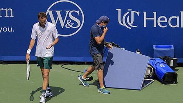 Медведев ударил ногой по камере после столкновения с оператором на турнире в Цинциннати