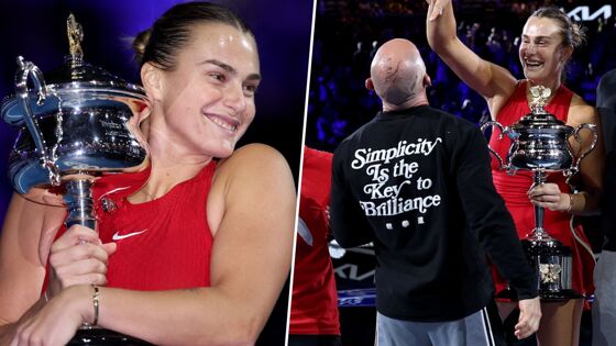 Соболенко дурачилась, обнимала кубок и расписалась на лысине тренера. Фото финала AO-2024