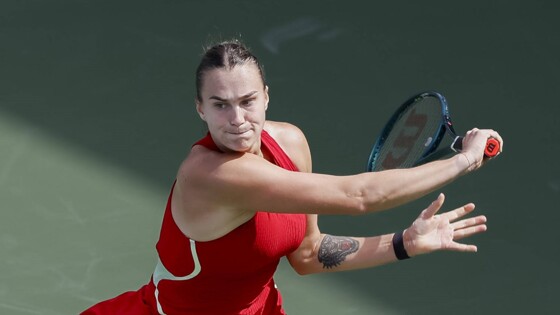 Арина Соболенко получила предупреждение за брань в матче против Эммы Радукану.