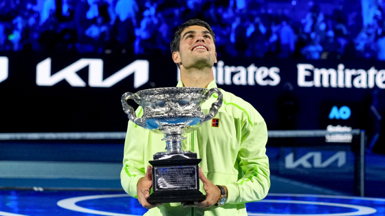 В воскресенье Алькарас в финале Открытого чемпионата Австралии обыграл серба Новака Джоковича со счетом 2:6, 6:2, 6:3, 7:5. Алькарас стал самым молодым теннисистом в Открытой эре (с 1968 года), побеждавшим на всех турнирах Большого шлема в одиночном разряде.