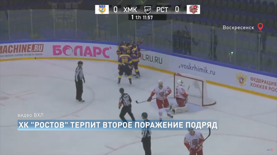 Ростовская область, 9 декабря 2020. Телеканал «ДОН 24». Матч команды начали без особой активности, воскресенцы открыли счет в середине первой двадцатиминутки. Даниил Кудашев сумел отразить бросок после выхода один на один, но на добивании он оказался бессилен – 1:0. Второй период прошел в острой борьбе, команды много бросали по воротам, но голкиперы держали свои владения на замке. На второй перерыв команды ушли при том же счете. В третьем отрезке матча ростовчане немного прибавили в скорости, вратарю подмосковной команды чаще приходилось вступать в игру, но шайба упорно не залетала в ворота. И все же ростовчане свой шанс реализовали. Артем Пеньковский воспользовался оплошностью защитников «Химика», перехватил шайбу в средней зоне, на «одном коньке» объехал всю оборону и бросил в дальний угол – 1:1. Финальная сирена зафиксировала эти цифры на табло, овертайм также не выявил победителя, а вот в серии послематчевых буллитов удача улыбнулась хозяевам, один бросок все же достиг цели. Итог – поражение нашей команды, 1:2. Следующий тур «Ростов» также проведет на выезде – 10 декабря с ХК «Рязань».