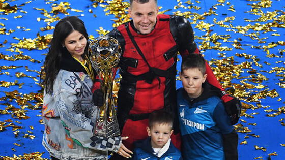 Нападающий "Зенита" Артем Дзюба получил лайк от голливудского актера Райана Рейнольдьса после выхода в костюме супергероя Дэдпула на церемонию награждения своей команды чемпионским Кубком за досрочную победу в чемпионате России. Сыгравший Дэдпула артиста лайкнул сразу несколько записей о выходе Дзюбы в Twitter. Ранее Дзюба рассказывал, что костюм Дэдпула у него хранится давно. "Я хотел как-то побаловаться. Мне кажется, на третье подряд чемпионство можно себе это позволить. Сейчас дойду до раздевалки и сниму костюм. Очень жарко. Я в шлеме чуть не задохнулся. Пойдем радоваться. Не знаю, каким будет следующий костюм. Может, Скорпиона или Бэтмена", — говорил он после матча. "Зенит" в седьмой раз в своей истории и в третий раз подряд стал чемпионом России, выиграв у "Локомотива" со счетом 6:1 в матче 28-го тура РПЛ. По количеству чемпионских титулов "Зенит" обошел московский ЦСКА, у которого шесть побед в чемпионатах России. Чаще первенство страны выигрывал только "Спартак", у московского клуба десять побед.