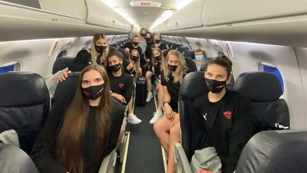 Россиянки летели с пересадкой в Амстердаме. Около полуночи по Москве команда заехала в «пузырь», организованный внутри отеля в центре Страсбурга. Во вторник девушки должны были против обязательное ПЦР-тестирование и провести первую тренировку на арене Rhenus Sport, где и пройдут матчи.