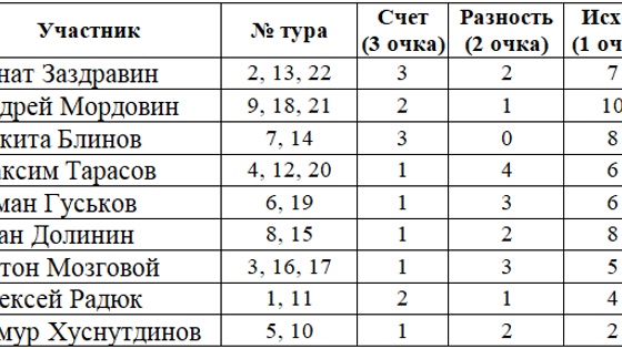 В конкурсе авторов дававший прогноз на 22 тур