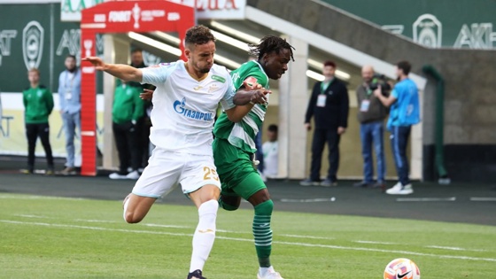 Более того, вскоре еще один футболист из этого списка удвоил преимущество грозненцев. В центре штрафной питерцев Нене Гмамбле головой скинул мяч Ивану Олейникову, который метров с 12-ти четко пробил в тот же правый от голкипера угол - 2:0, 14-я минута.