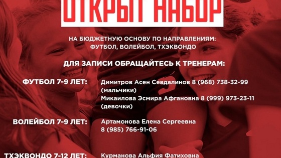 Ребят приглашают на занятия в ГБУ МКСШ «Зеленоград» по направлениям: футбол, волейбол и тхэквондо.