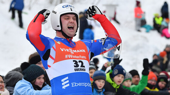 Россиянин Семён Павличенко одержал победу в спринте в соревнованиях одиночек на этапе Кубка мира по санному спорту, который проходит в Сочи.
