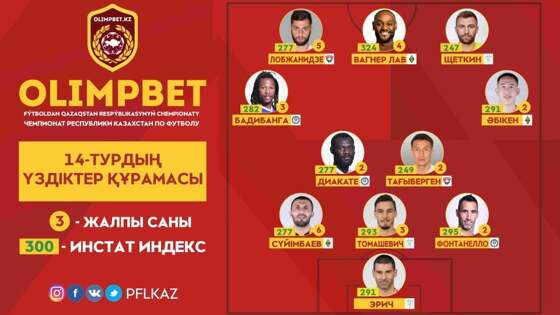 Нападающие: Элгуджа Лобжанидзе («Кайсар»), Вагнер Лав («Кайрат») и Алексей Щеткин («Астана»).