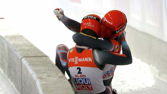Сани. Чемпионат мира. Эггерт и Бенекен победили в двойках, Кашкин и Коршунов дисквалифицированы за попытку финишировать руками