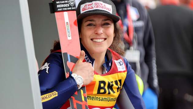На заключительном этапе победу в супергиганте одержала итальянка Федерика Бриньоне, Гут стала второй.