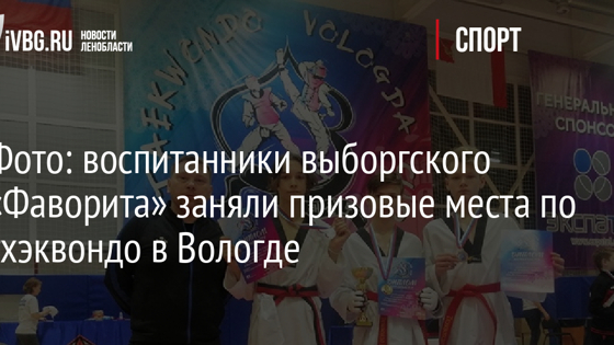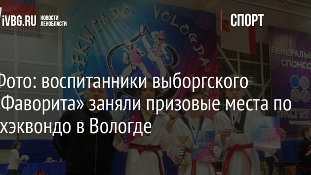 Воспитанники спортивной школы олимпийского резерва «Фаворит» из Выборга заняли призовые места на первенство СЗФО по тхэквондо среди юниоров и юниорок (2004-2006 годы рождения) и юношей и девушек (2007-2009 годы рождения). В первенстве, проходившем 19 марта в Вологде, приняли участие около 200 спортсменов из Карелии, НАО, Калининграда, Архангельска, Коми, Ленинградской области и Великого Новгорода. Школу «Фаворит» в составе сборной Ленинградской области представляли пятеро спортсменов. Итоги первого дня поединков: Филиппов Андрей – 1 место. Дробышев Егор – 2 место. Петушков Константин – 2 место. Микуленко Даниил – 3 место. Филиппов Андрей выполнил норматив «Кандидат в Мастера спорта» и получил право участвовать в первенстве России. Уже 20 марта, на следующий день после изматывающих поединков, спортсмены из Ленинградской области приняли участие в VOLOGDA CUP, в котором участвовали 300 спортсменов. Итоги второго дня поединков: Петушков Константин – 1 место (четыре боя). Филиппов Андрей – 2 место (три боя). Микуленко Даниил – 3 место (два боя).