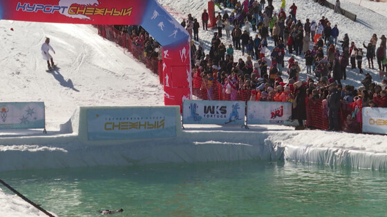 В Петербург пришла весна – горнолыжные курорты закрывают сезон. Традиционные проводы везде разные. О самом мокром празднике для экстремалов расскажет корреспондент «МИР 24» Артур Ломидзе.