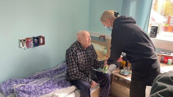 Рослякова поздравила ветерана Андрея Екишкина с наступающим Днём Победы